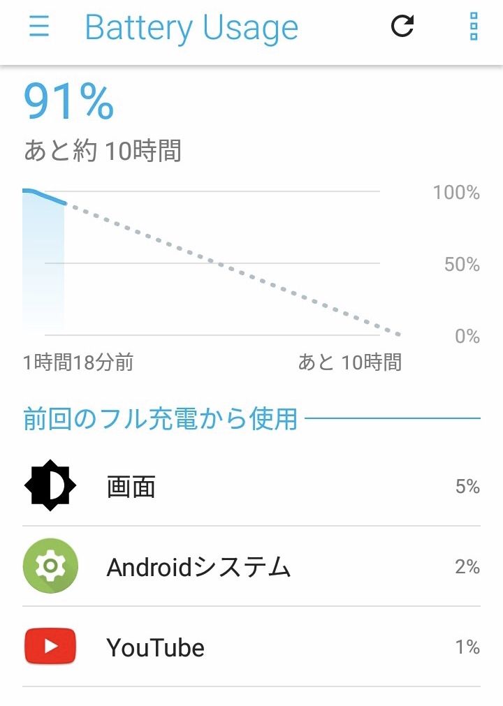 試しにwifi環境のもと、画面の明るさを最大にして1時間のYoutube動画を視聴してみました。