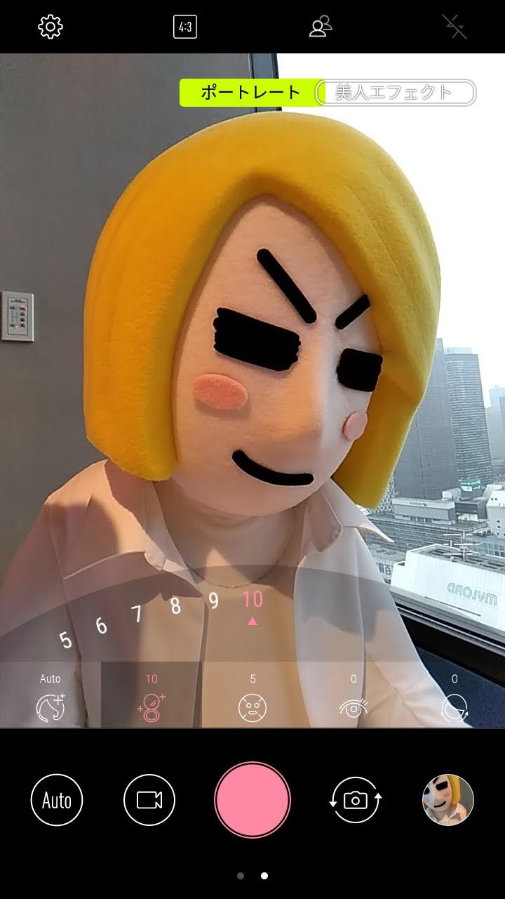 ▲デフォルトで搭載されている美人エフェクト。肌のキメ・肌のトーン・目の大きさ・顔の大きさが細かく調整できます。