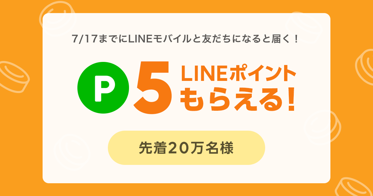 LINEでLINEモバイルと友だちになっていれば、LINEポイントが貰えるキャンペーンが7/18の朝に配信いたしますので、お知らせいたします。