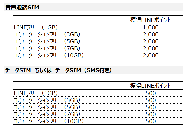 ■ それぞれのプランで獲得できるLINEポイント